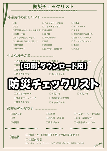 【印刷・ダウンロード用】防災チェックリスト(災害が起きる前にできること)