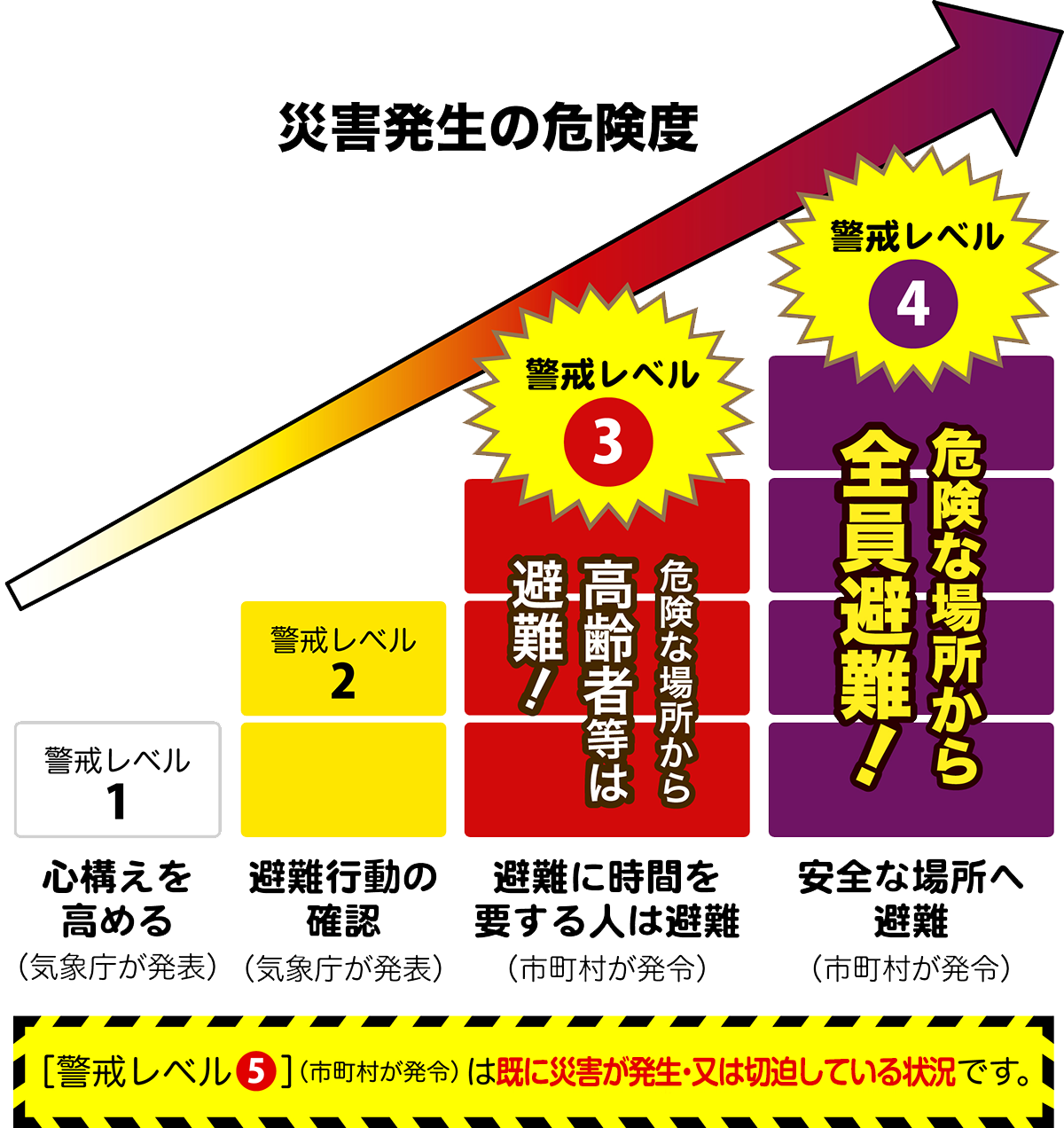 防災気象情報と警戒レベルの正しい理解が、命を守る行動につながる 大雨や台風などの自然災害が迫ったとき、どう行動すべきか判断するための重要な手がかりとなるのが「防災気象情報」です。これは、国や都道府県が段階的に発表する注意報・警報・特別警報・土砂災害警戒情報・洪水予報などの情報で、災害発生の可能性を示しつつ、警戒を呼びかける役割を担っています。 防災気象情報には大きく2つの目的があります。ひとつは、市町村が避難指示などの避難情報を出す際の判断をサポートすること。もうひとつは、住民一人ひとりが自らの判断で避難 ...